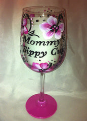 - Delight mommy, grandma, auntie... with her own personalized wine glass hand painted with beautiful purple hibiscus.